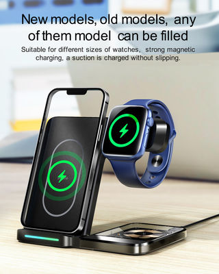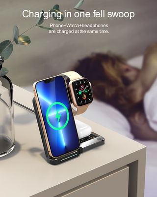 Máy sạc không dây mô hình 3 trong 1 được thiết kế với sự tiện lợi của bạn trong tâm trí. Nó có thể sạc lên đến ba thiết bị cùng một lúc, vì vậy bạn không cần phải lo lắng về việc hết cổng sạc.Thiết bị cũng tương thích với một loạt các thiết bị, bao gồm iPhone, điện thoại Samsung Galaxy, AirPods và đồng hồ Apple.